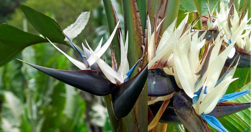 Strelitzia nicolai : Surnommé l’arbre du voyageur, ce géant peut atteindre 10 mètres en extérieur. Ses fleurs blanches et bleues apparaissent uniquement sur les sujets âgés de plus de cinq ans.