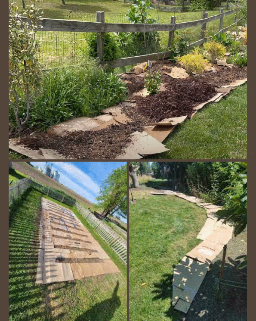 Check cardboard-mulched areas monthly during the first growing season. Persistent weeds occasionally emerge through seams or thin spots—address these promptly by adding additional cardboard pieces or manually removing growth. Early intervention prevents weed establishment and seed production.